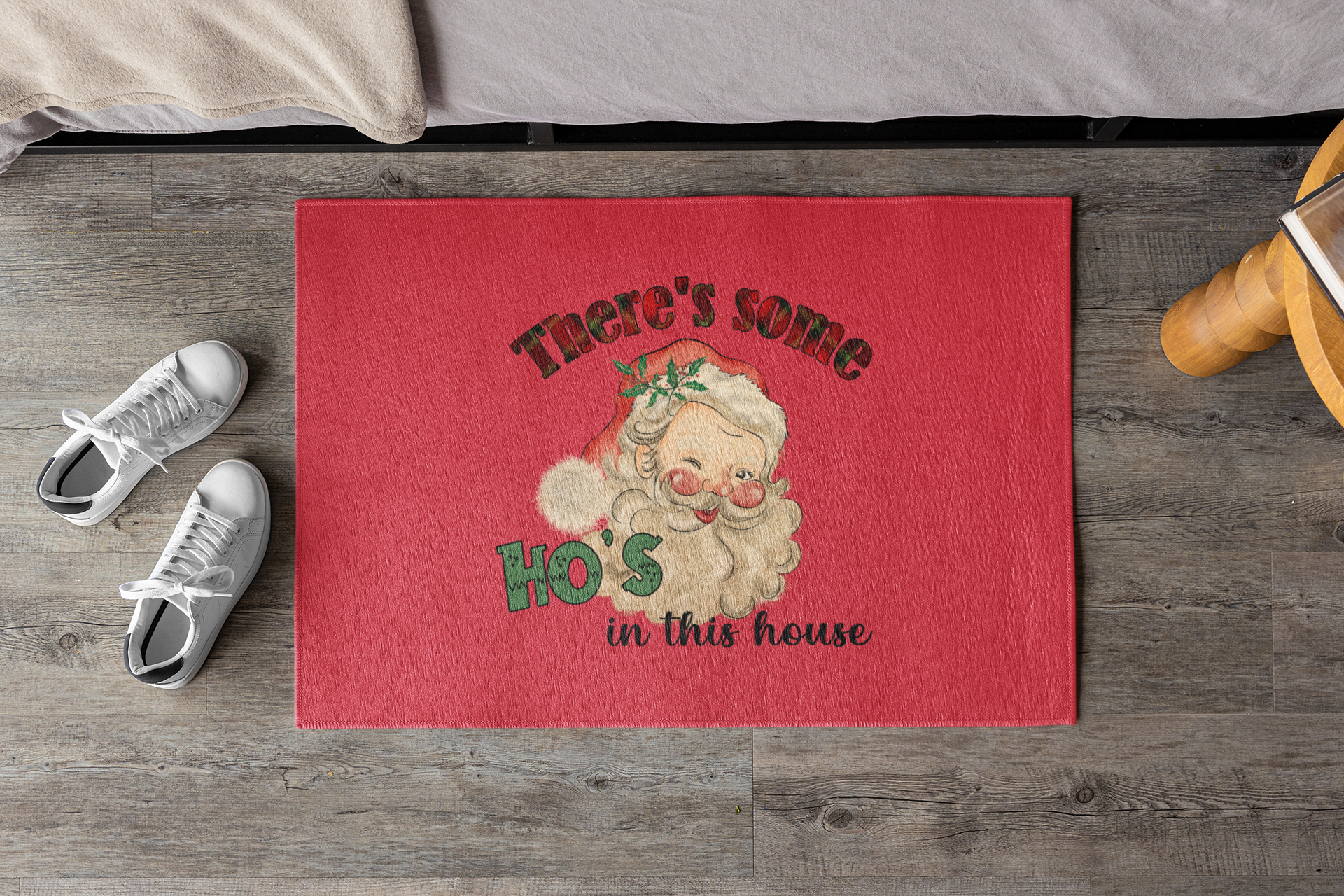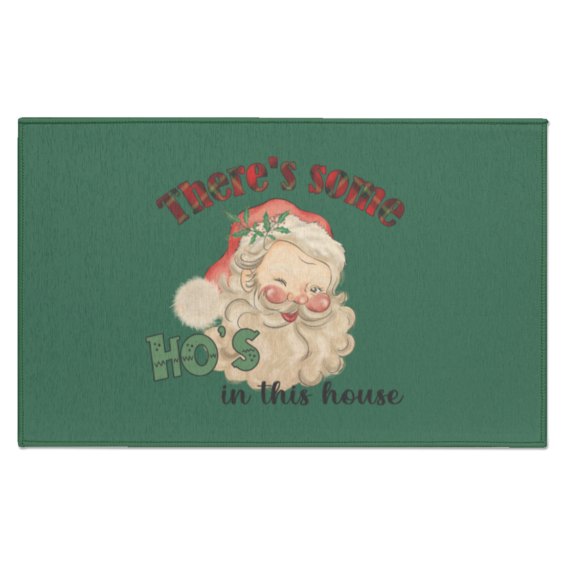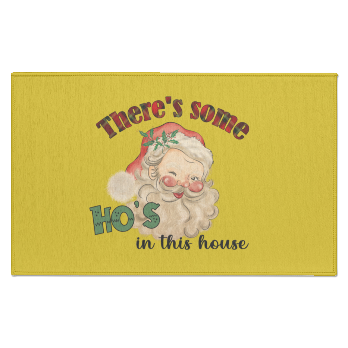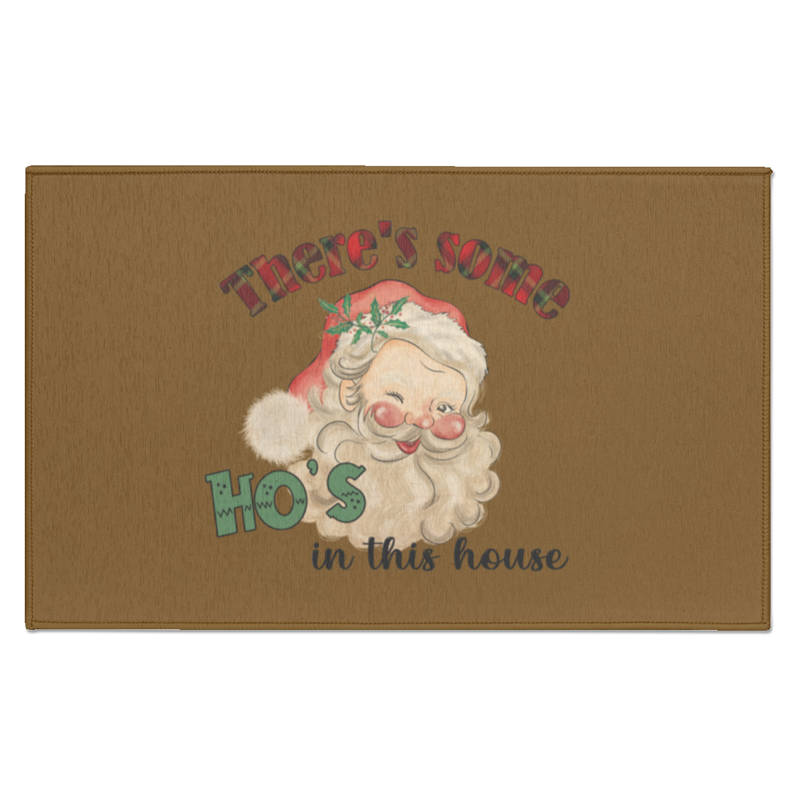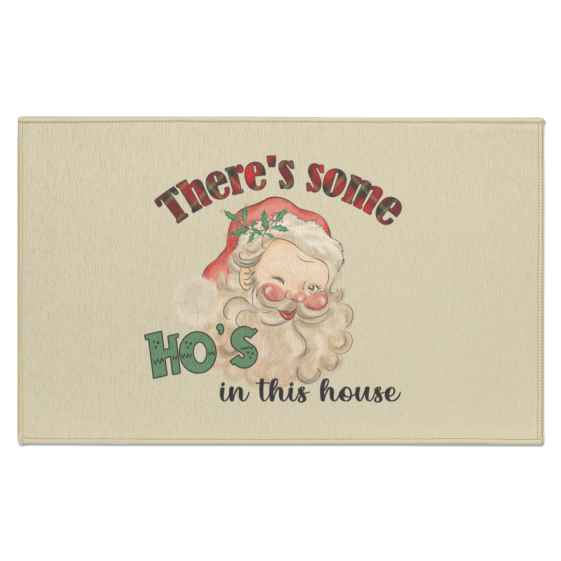 CHRISTMAS - THERE'S SOME HO'S IN THIS HOUSE VINTAGE INSPIRED SANTA FUNNY INDOOR DORMAT
